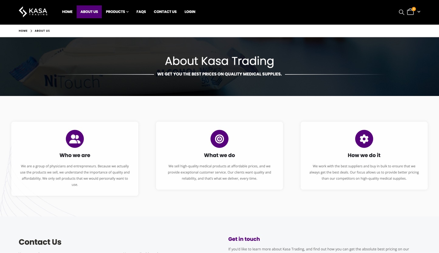 Kasa Trading, a company founded by physicians and entrepreneurs, aims to provide high-quality medical products at affordable prices while ensuring exceptional customer service. Their business model emphasizes quality, reliability, and affordability, catering to clients who prioritize these factors in their medical supply purchases.