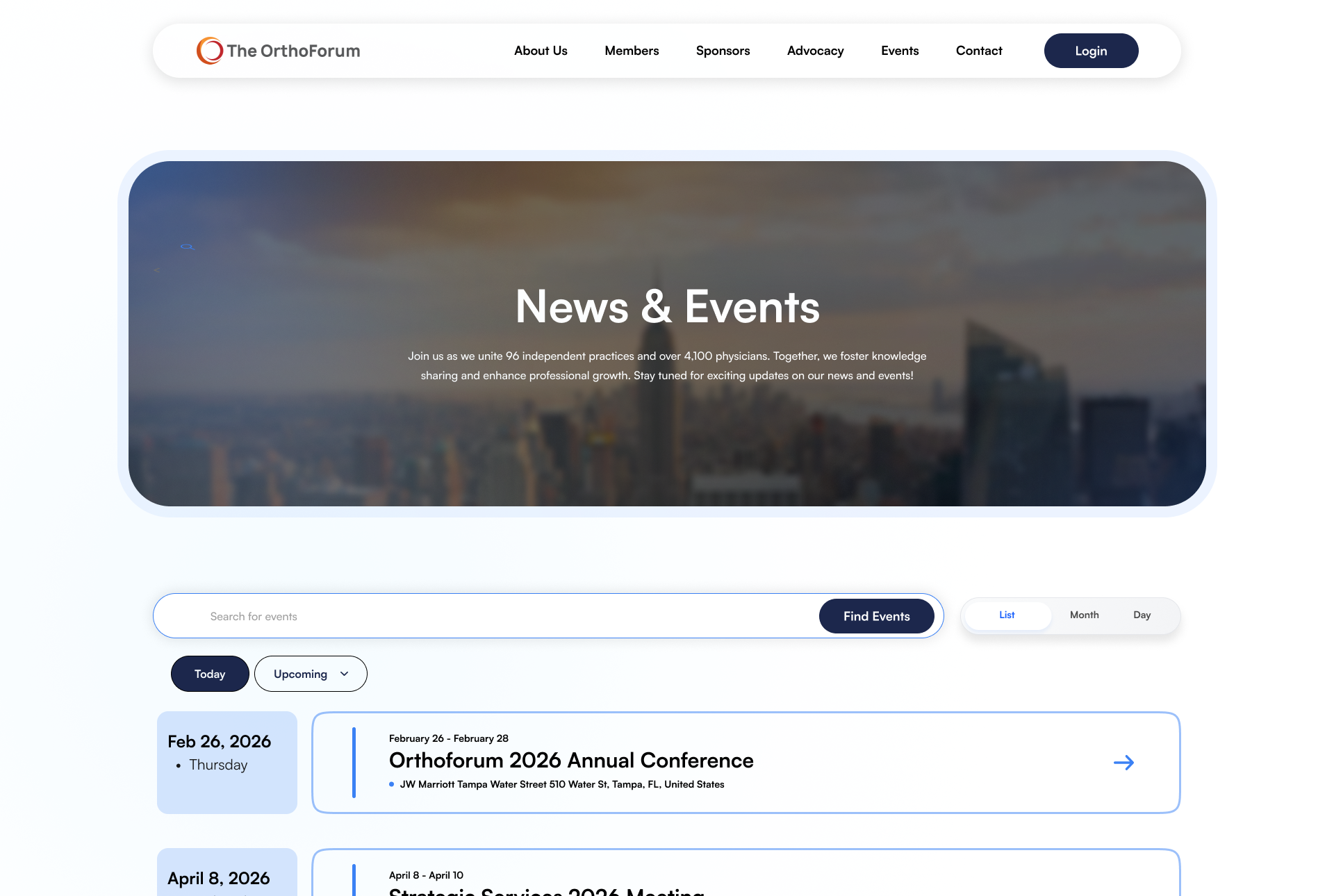 The OrthoForum, a leading national organization representing large privately-owned orthopedic practices in the United States, needed a comprehensive online platform to connect its members and support their operational needs. The organization aimed to facilitate networking, benchmarking, advocacy, and innovation among its members, all of whom face unique challenges in the evolving healthcare landscape. The goal was to create a website that would enhance member engagement, streamline information sharing, and position the organization as a leader in value-based orthopedic care.